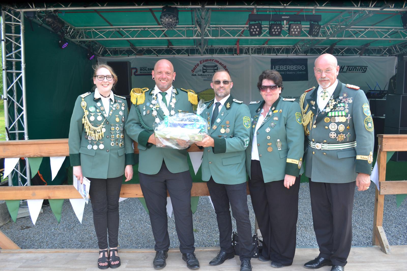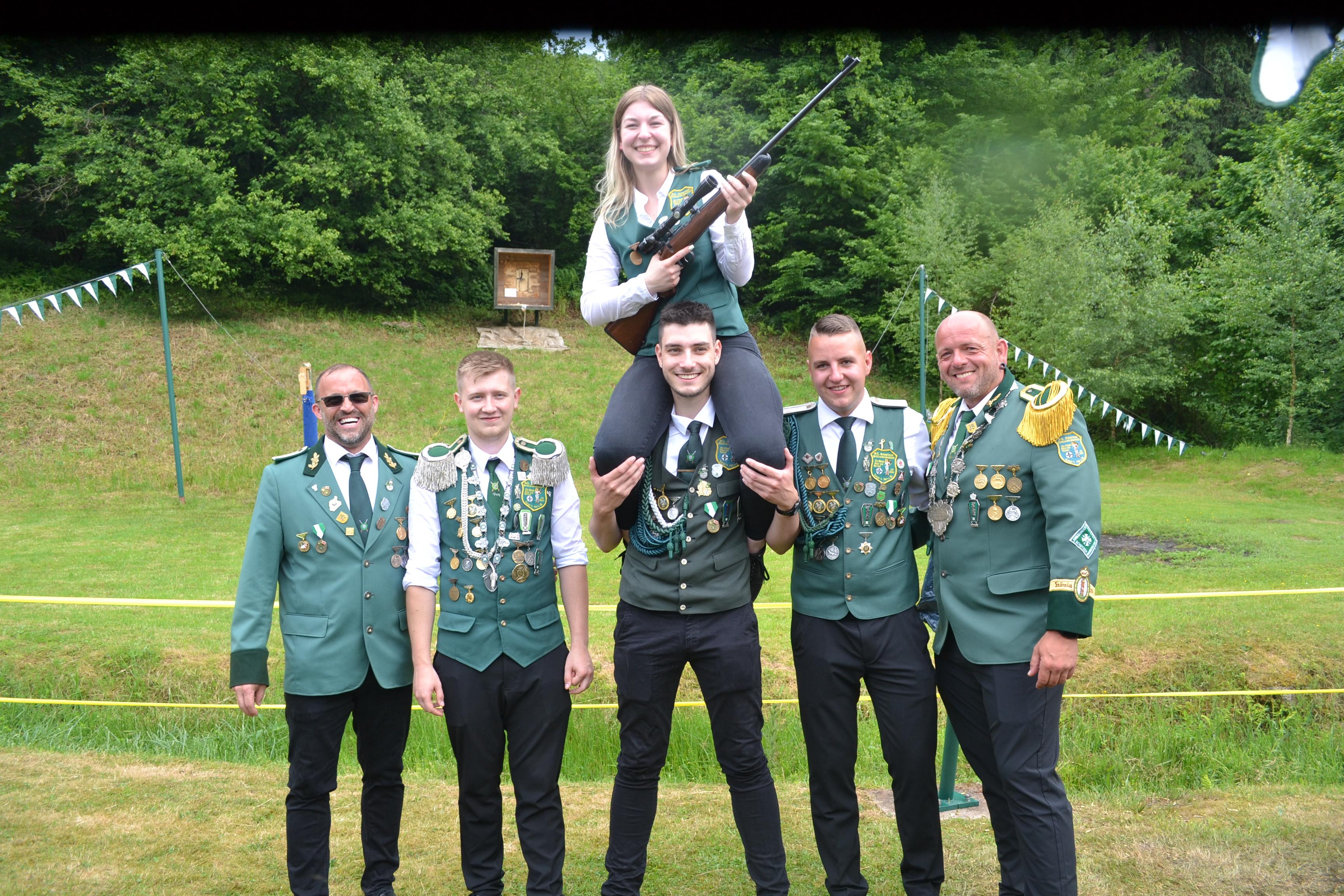 Sonntagmorgen hieß es früh aufstehen, denn der traditionelle Gottesdienst stand an. Nachdem die Schützen diesen feierlich mit ihrem Präses Klaus Nickl gefeiert hatten, wurde zum Schützenplatz marschiert. Hier spielte der Looper Tambourcorps ein Platzkonzert, während die Kaiservogelanwärter den Vogel Stück für Stück von der Stange schossen. Drei Aspiranten gingen an den Start, um den verbliebenen Rumpf von der Stange zu holen. André Neumann gelang es mit dem 272. Schuss die Kaiserwürde zu erlangen. Somit wird zum fünften Mal in Folge der scheidende König zum Kaiser, mittlerweile ein fast schon ungeschriebenes Gesetz in Loope. Um 14.30 Uhr startete der Festumzug durch die Straßen von Loope. Die 1. Brudermeisterin Anja Linke bedankte sich am Festplatz angekommen, bei allen befreundeten Vereinen, die am Umzug teilgenommen haben. Nun ging es an das Königsvogelschießen. Die Altschützen der Bruderschaft starteten mit der Krone, welche sich André Neumann mit dem 75. Schuss sicherte. Der Engelskirchener Flügel ging mit dem 184. Schuss an Jens Dahl. Den Looper Flügel schoss Michael Borgard mit dem 219. Schuss von der Stange. Nun hieß es: Wer zieht seine Schützenjacke an, um den Rumpf von der Stange zu holen und somit die Königswürde zu erlangen? David Fischer, Olaf Miebach, Sonja Knura und Martin Zettwitz gingen an den Start und boten einen großartigen Wettkampf. Der goldene und somit finale Schuss gelang am Ende Martin Zettwitz. Mit dem 335. Schuss schoss er den Rumpf des Königsvogels von der Stange. Er wählt seine Ehefrau Ramona zur Königin. Um 20 Uhr war es dann so weit. In einer feierlichen Krönung, welche Anja Linke mit Unterstützung des Präses der Bruderschaft, Klaus Nickl und dem 2. Brudermeister Hans-Wilhelm Hagen abhielt, wurden zuerst die alten Majestäten feierlich entkrönt. Nachdem die Majestäten-Juwelen abgeben waren, wurden die neuen Majestäten für das Schützenjahr 2025/2026 gekrönt. Die Looper Bruderschaft ist stolz, mit den neuen Majestäten in das Schützenjahr 2025/2026 zu starten! Besonders stolz ist man auf die Jugend, die in Loope sehr gut vertreten ist!